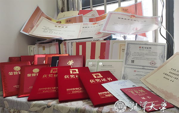 這次較真,讓廖智超在學習專業課的同時還輔修了法學雙學位,在學習英語的同時還輔修了日語、法語。他每天學習時間超過16個小時,堅持早起練習口譯,收聽中英雙語時政新聞,凌晨外語樓夜深人靜,仍獨自在訓練室學習、備賽;對著鏡子一遍遍練習,拿著錄音機一遍遍回聽。無論是洗漱、吃飯,還是上下課路上,廖智超都會利用一切空余時間插上耳機做各種練習。廖智超學年績點3.923,綜合成績排名專業第一,三年獲校甲等獎學金,獲三好學生、三好學生標兵稱號,湖南省優秀畢業生。