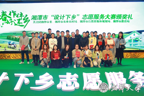 10月31日,來自全省多所高校的136支設(shè)計團隊參加了湘潭市“設(shè)計下鄉(xiāng)”志愿服務(wù)大賽,我校學(xué)生獲得一等獎1項、二等獎2項、三等獎3項、優(yōu)勝獎4項。湖南省農(nóng)業(yè)農(nóng)村廳副廳長、黨組成員陳冬貴、湘潭市委副書記何俊峰以及我校副校長劉建平等出席頒獎典禮。