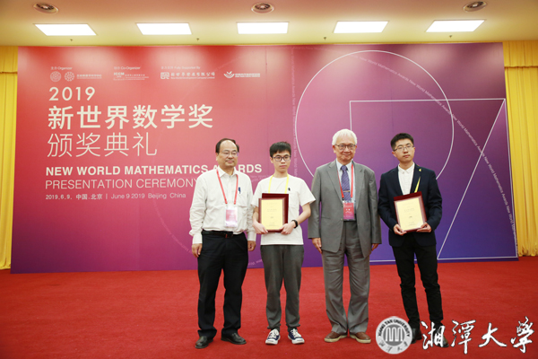 新世界數學獎(New World Mathematical Award,簡稱NWMA)是面向全球杰出華人數學學生的獎項,由華人杰出數學家、菲爾茲獎和沃爾夫數學獎獲得者丘成桐教授與新世界發展有限公司董事總經理鄭家純博士于2007年共同創立,每三年舉辦一次頒獎典禮,旨在激勵全世界范圍內杰出華人數學學子追求數學真理,對年輕數學人才取得的成就予以認可。本屆評選包括2017—2019年3個年度,本科組共評出2項金獎、3項銀獎和1項優勝獎,其中在2018年度評出的3個獎項中,湘大學子獲得1項銀獎和1項優勝獎。