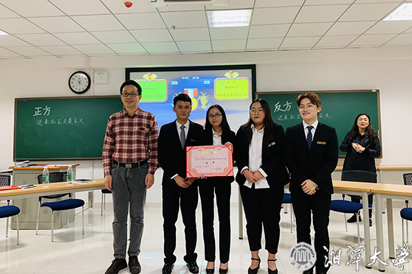 經(jīng)過激烈的角逐,我校周曉雪、王秦威、莫浩源、楊戀星、李珊珊、胡俊堯、付景怡、資明貴8位同學(xué)組成的參賽隊,相繼戰(zhàn)勝長沙學(xué)院、國防科技大學(xué)、湖南文理學(xué)院和湖南大學(xué),成為本次比賽的冠軍,我校李珊珊同學(xué)獲“全程最佳辯手”稱號。