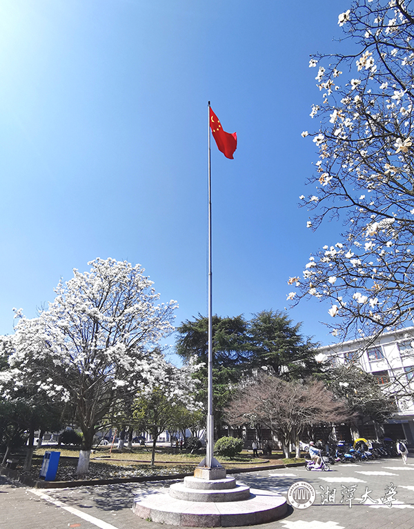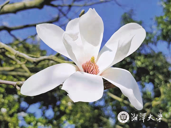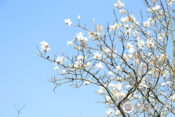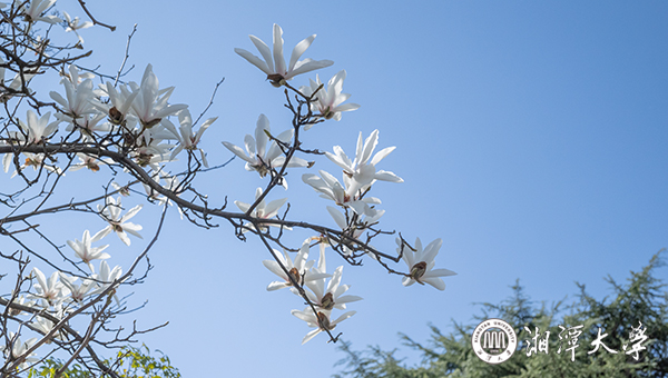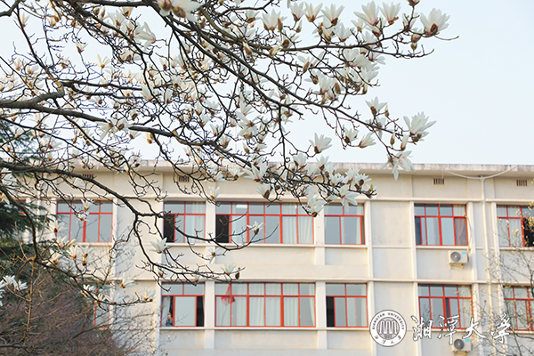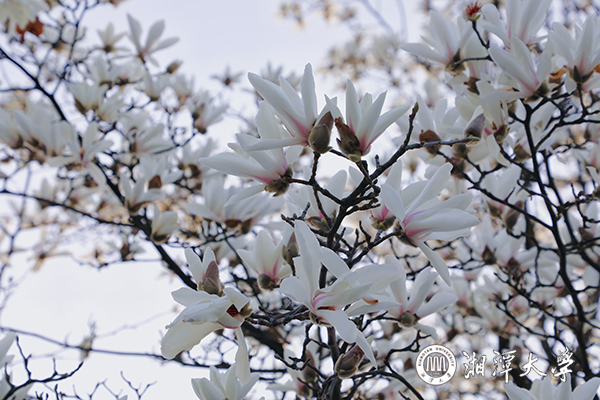 驚蟄時節 ,春風和暖,湘潭大學第一教學樓前,玉蘭報春,花姿綽約,馥郁芬芳,旖旎風光,引人駐足。