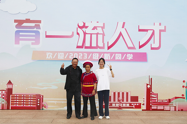 新生與家人在湘大打卡留念。