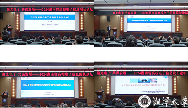 特邀報告環(huán)節(jié),4位專家學(xué)者從不同角度,探討了湖南省電子信息領(lǐng)域的人才培養(yǎng)、專業(yè)建設(shè)、發(fā)展現(xiàn)狀與未來規(guī)劃。湖南大學(xué)物理與微電子科學(xué)學(xué)院文雙春教授闡述人工智能時代,電子信息類專業(yè)的建設(shè)方向與路徑;中南大學(xué)電子信息學(xué)院鄧曉衡教授圍繞“推進(jìn)研究生教育改革,高質(zhì)量培養(yǎng)創(chuàng)新人才”展開講述;國防科技大學(xué)電子科學(xué)學(xué)院馬東堂教授分享了該校的相關(guān)學(xué)科專業(yè)建設(shè)經(jīng)驗(yàn);我校自動化與電子信息學(xué)院段斌教授對優(yōu)化畢業(yè)要求達(dá)成評價的2024年新方案作詳細(xì)報告。