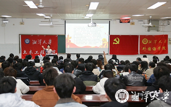 3月29日下午,紅色旋律在尚美樓第二階梯教室回蕩。外國語學院關工委副主任范正君正以“歌唱抗戰紅歌,爭做民族脊梁”為主題,為外國語學院、土木工程學院168名入黨積極分子開啟一堂“聲”入人心的黨史教育課。